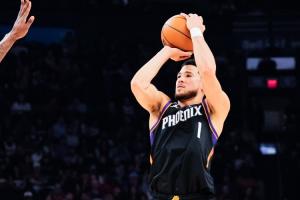上半场,太阳后卫布克表现一般,出场15分钟4投2中,三分2中0、罚球3中3拿到7分4助攻,正负值-7。
